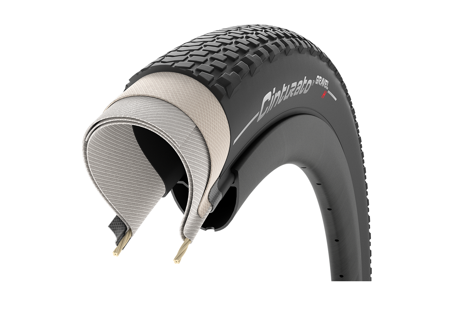 Cinturato™ Gravel Hard Terrain heeft een versterkte binnenstructuur met een laag beschermende vezels die van hiel tot hiel loopt en die verbonden is met een structuur van Aramide tubeless-ready , geoptimaliseerd voor moderne, brede velgen. Behalve een zeer hoge lekbestendigheid biedt Cinturato™ Gravel ongekende rolweerstand- en grip – kenmerken dankzij een betrouwbaar en zeer goed presterend profiel, exact wat het trademark Cinturato™ van Pirelli beroemd maakte.